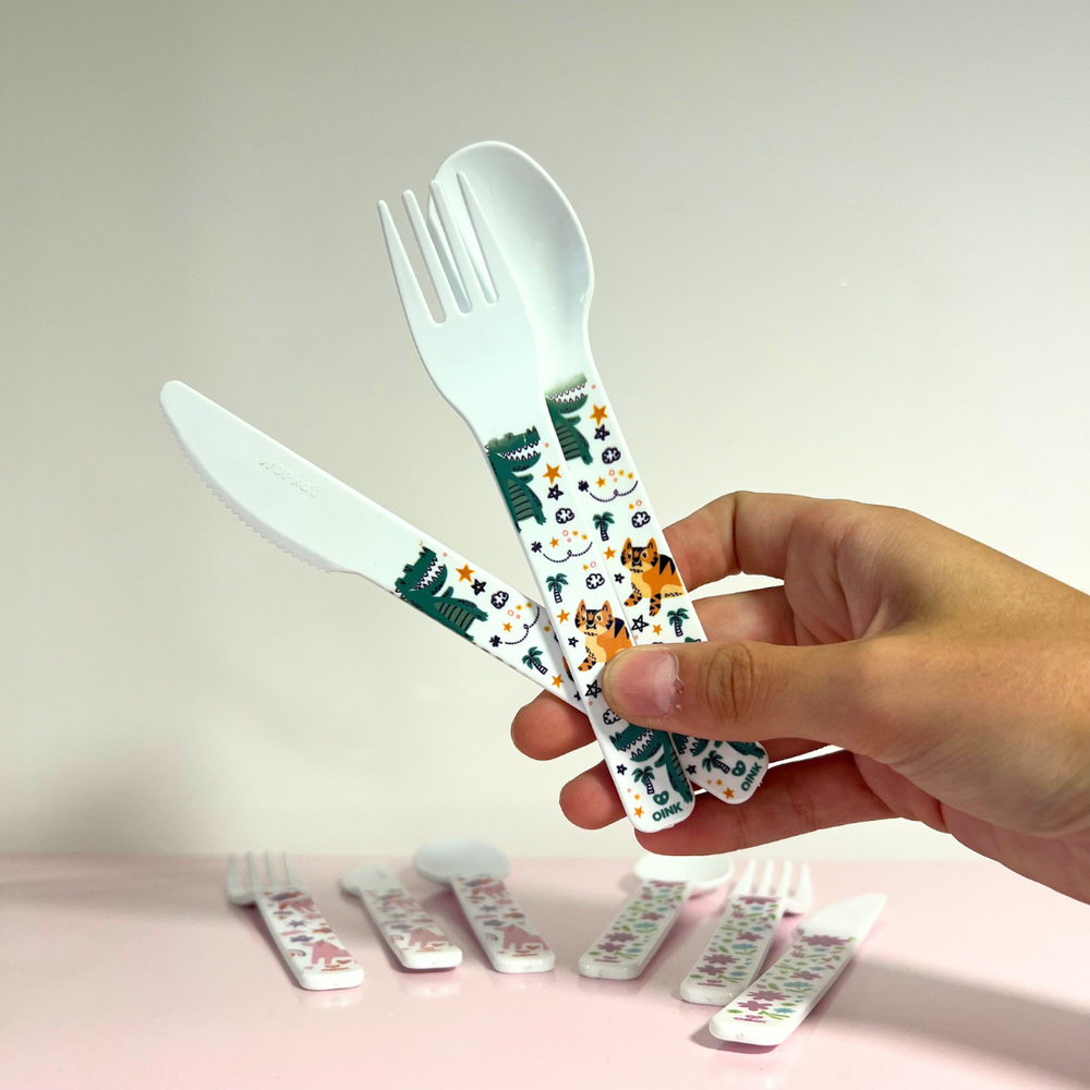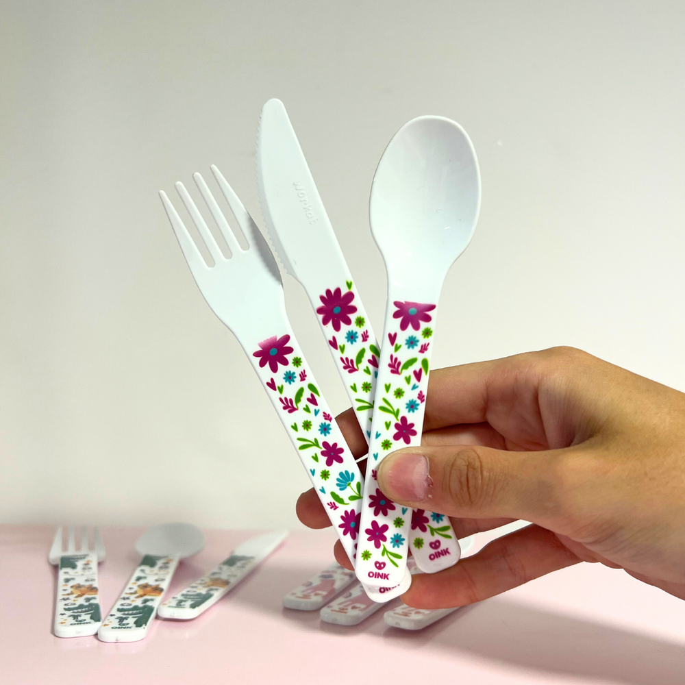 Cubiertos llenos de ternura y color con diseños súper divertidos. Son ligeros, resistentes y cómodos para los más peques. Perfectos para hacer que la comida sea más especial y divertida.