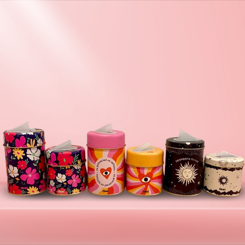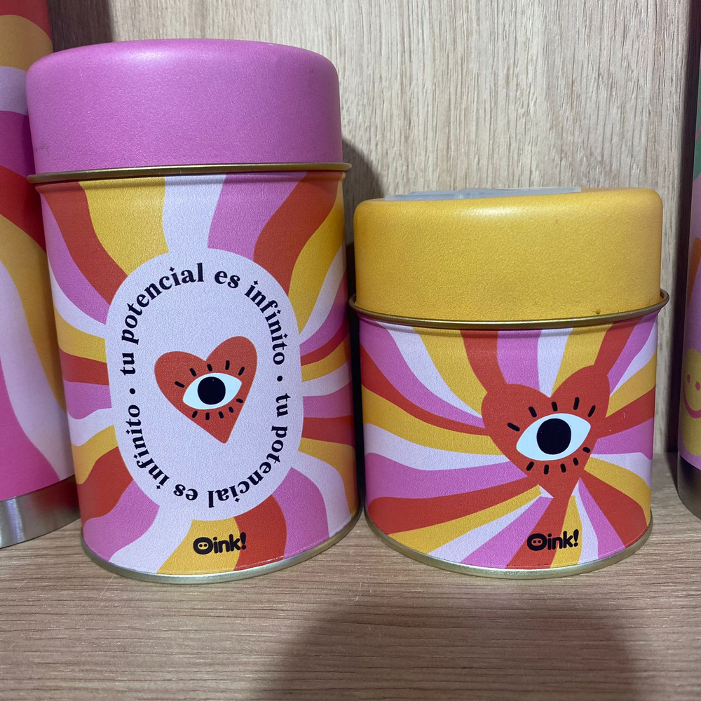 Set de 2 latas con pico vertedor rebatible de pvc. Pensados para contener Yerba y tu endulzante favorito. Los diseños más lindos realizados en litografía. Medidas: Grande: 16,5 x 8,5cm de diametro / Chica 11 x 8,5cm de diametro